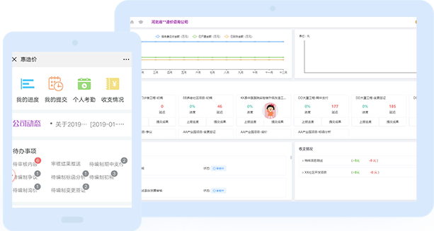 管理驾驶舱作为高层管理层提供的“一站式”决策支持的管理信息中心系统。管理层人员随时随地可查看公司整体运营情况:项目进度、人员、费用、收入、部门专项分析以及各类综合数据分析,为企业战略决策提供支持